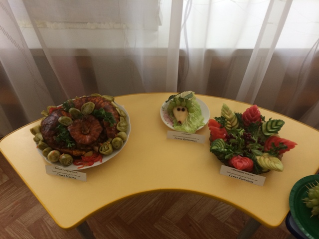 В этот день все наши гости были участниками всего происходящего, а именно: большая, развернутая фотовыставка из семейного альбома " Вкусная картина", приготовленные блюда на лучшую детско-родителькую фантазию из овощей и фруктов "В королевстве витаминов", непосредственное участие в мастер-классе "Испечем пироги всем на удивление", викторинах, обсуждениях видеоролика, ассортимента детского питания в ДОО, анкетировании по оценке качества питания.
