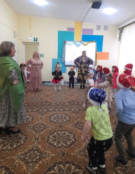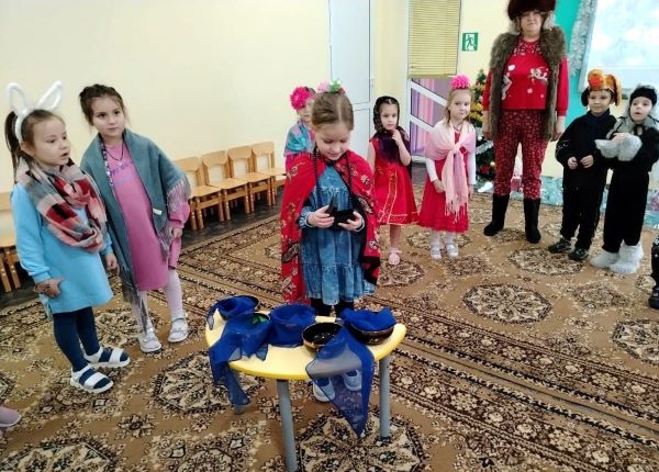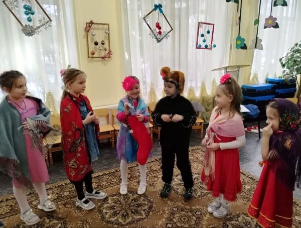 Сегодня в нашем детском саду прошёл фольклорный праздник «Коляда - отворяй ворота». Дети средней, старшей и подготовительной группы веселились от души, пели колядки, водили русские народные хороводы, рассказывали потешки и прибаутки, играли в народные игры, гадали на горшочках.