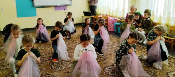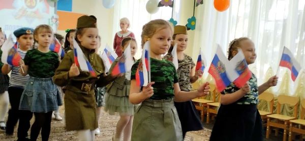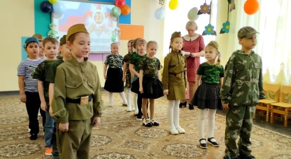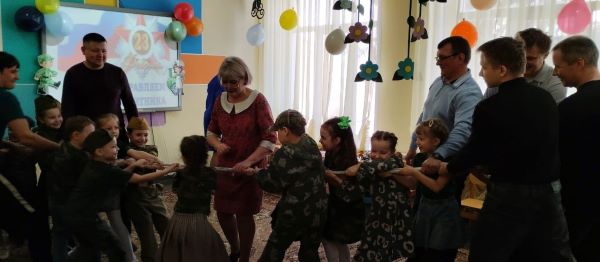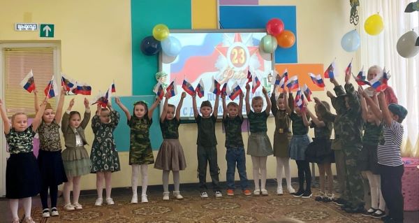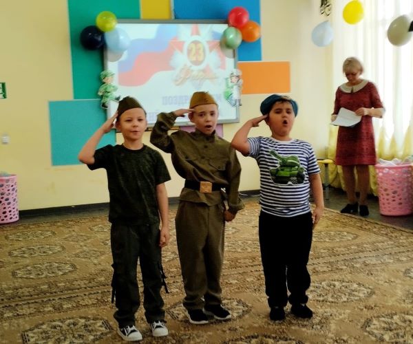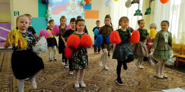 Воспитанники старшей и подготовительной групп пели патриотические песни, читали стихи, приуроченные к этому замечательному празднику, поздравляли пап и дедушек частушками и танцевали для них.